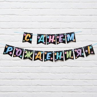 Гирлянда на ленте "С Днем рождения", черная с цветными шарами