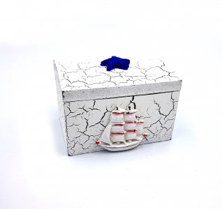Шкатулка в виде сундука, оформленного в морском стиле.